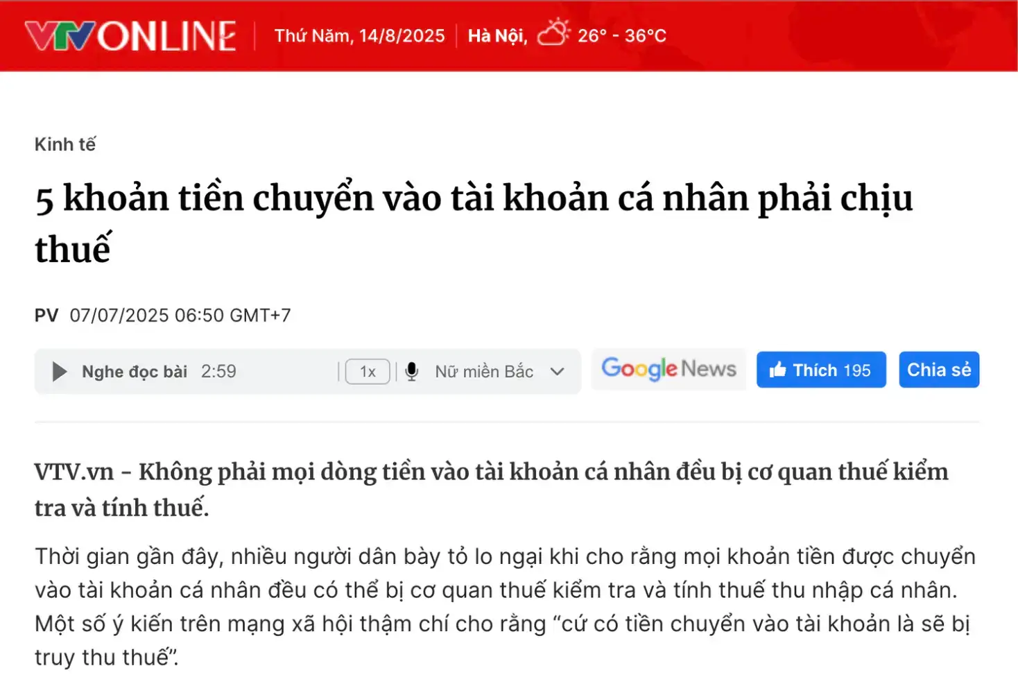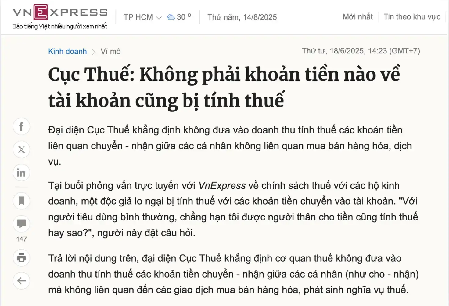 VnExpress: “Chỉ những khoản thu nhập từ sản xuất, kinh doanh mới bị đánh